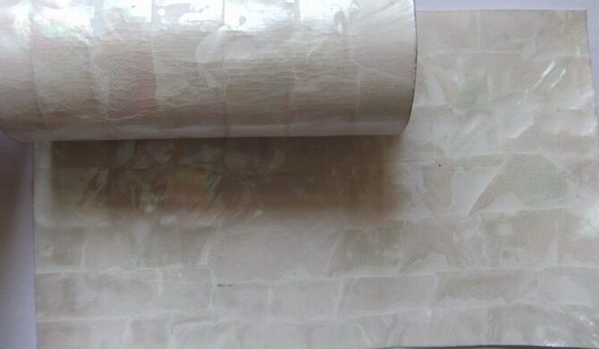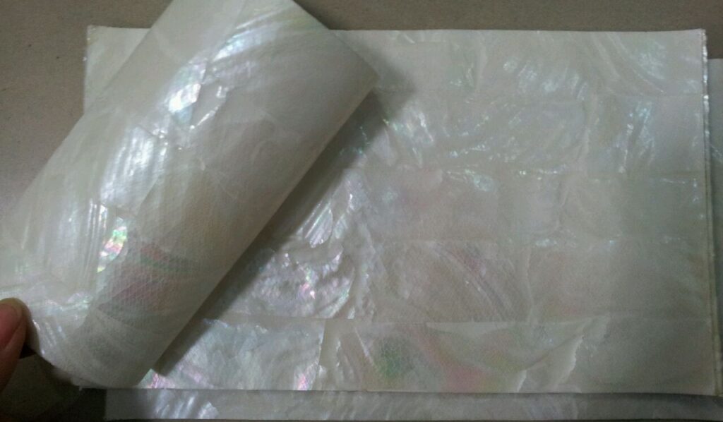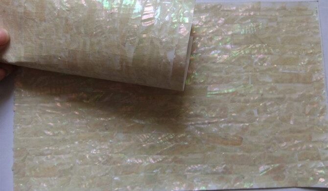 Flexibile shell veneer is based on the common shell veeers which sticked onto adhesive stickers,using a special technique, cutting the shell paper into small pieces with a blade to achieve the purpose of flexibile. There will be many small cracks on the flexibile shell veneer surfaces.